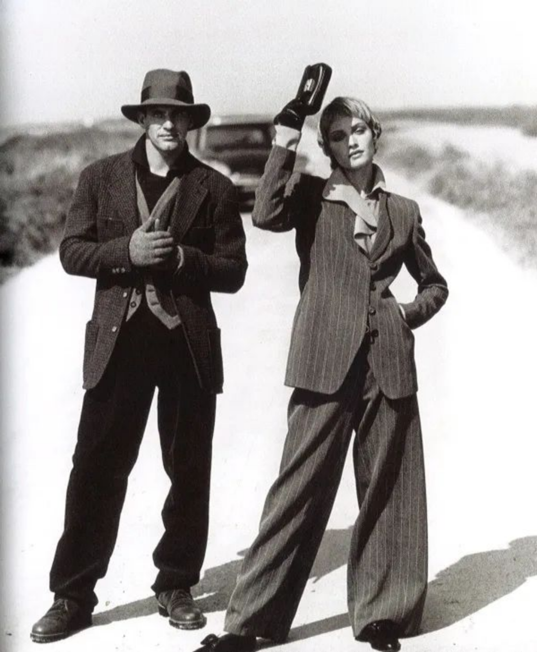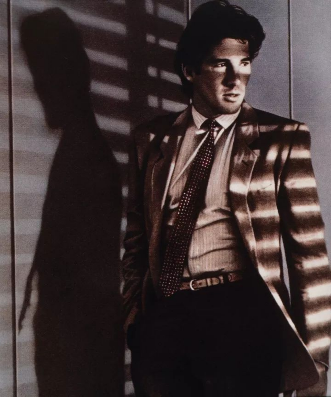 1980年前,男装偏向于刻板、硬线条的风格,虽然笔挺,但略显拘谨、穿着不适。直到电影《美国舞男》上映,英俊的男主,穿着阿玛尼设计的“权力套装”,亮相便惊艳全场。此后他为超200部电影设计过服装。