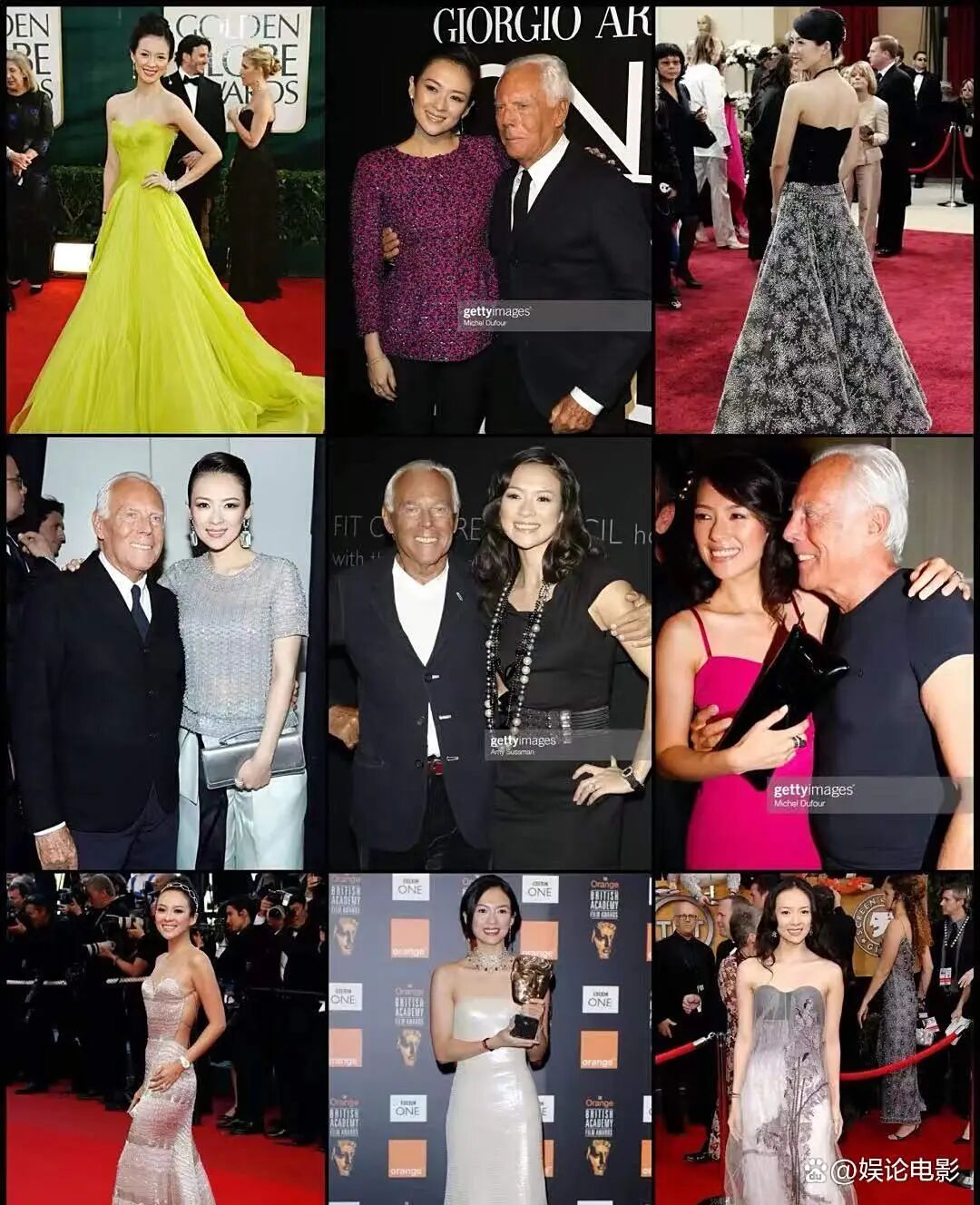 章子怡曾经和阿玛尼品牌多次合作,身穿其礼服走过很多红毯。