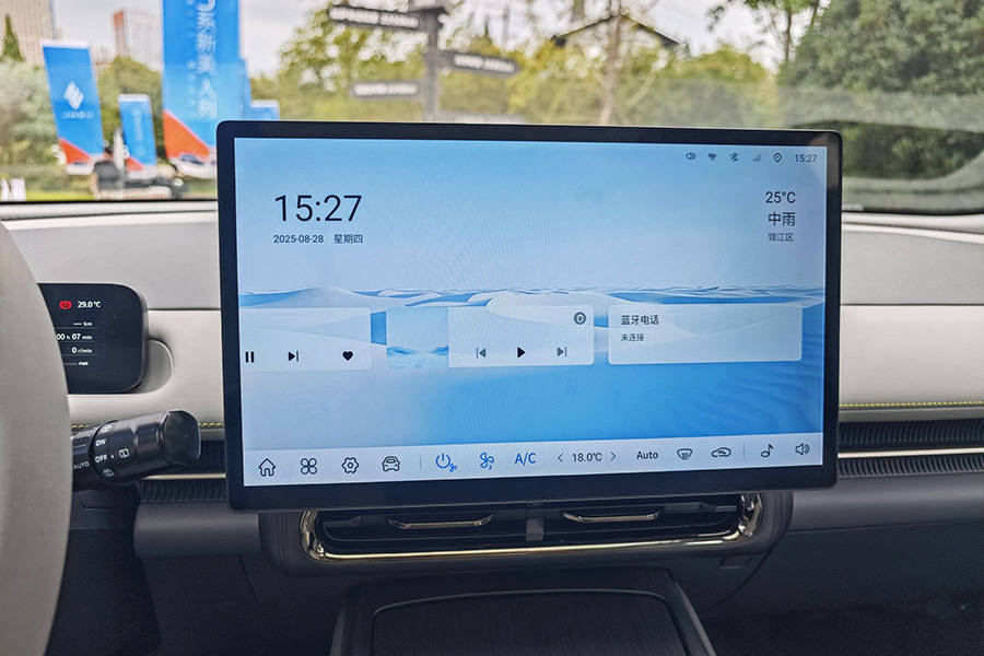 内饰布局遵循极简主义理念,中央悬浮式中控大屏成为视觉焦点,下方集成旋钮式换挡机构与无线充电模块,既提升了操作便利性,又保持了台面的整洁度。三辐式方向盘搭配小尺寸液晶仪表,在保证信息清晰显示的同时,营造出科技感十足的驾驶氛围。值得关注的是,该车搭载了L2级智能驾驶辅助系统,涵盖自适应巡航、车道保持等多项功能,为行车安全提供全方位保障。