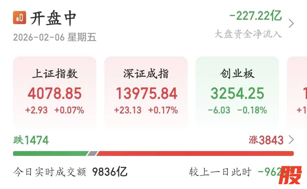 【大河财立方消息】2月6日,A股低开回升,沪指、深成指双双翻红,此前均跌超1%。中药、化工、电网、量子科技等方向涨幅居前,沪深京三市上涨个股超3800只。